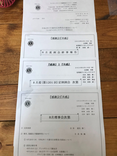 2020.8.19日 太鼓橋にてpm18時〜理事会pm18時45分〜第1201回8月度定例例会を開催しました。